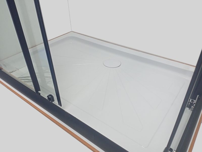 - Поддон низкий, белый из ABS-пластика, высотой 15 см, дно с рисунком против скольжения,