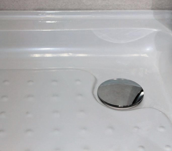 - Поддон низкий, белый из ABS-пластика, высотой 15 см, дно с рисунком,