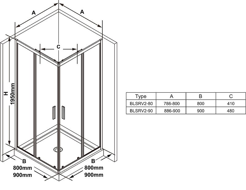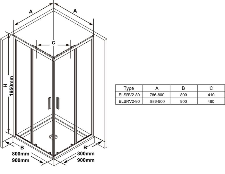 Душевой уголок Ravak Blix Slim BLSRV2-90 90x90 X1LM70C00Z1 профиль Хром стекло Transparent купить