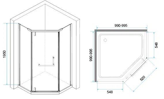 Душевой угол трапеция с распашной дверью