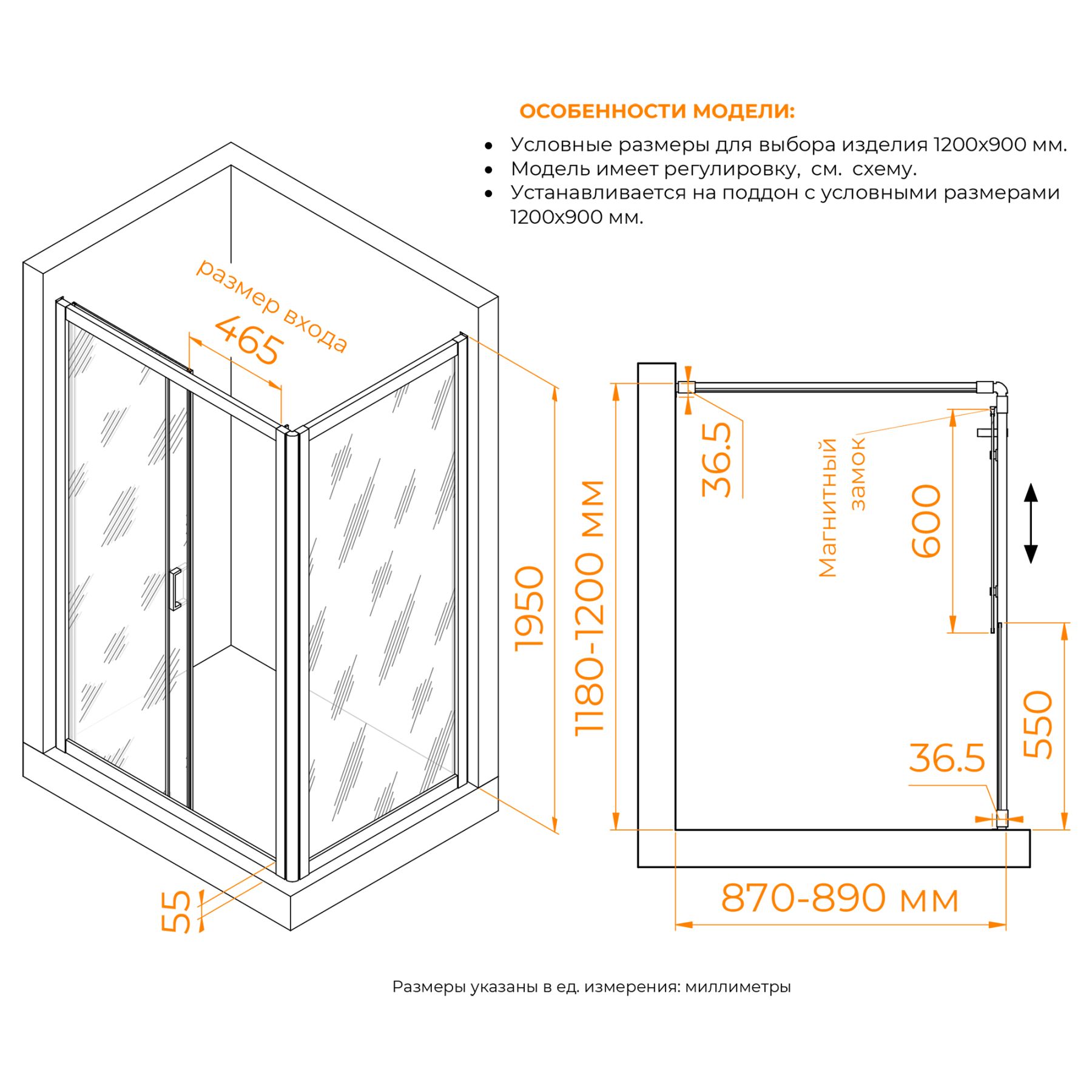 - Высота общая: 1950 мм