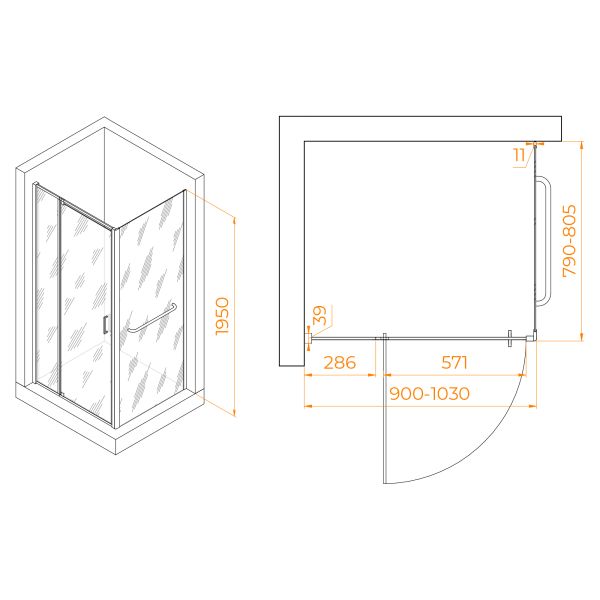 Душевой уголок RGW PA-078-1B (RGW PA-008B + Z-060-2B) 3508078198-14 90x80см чёрный купить