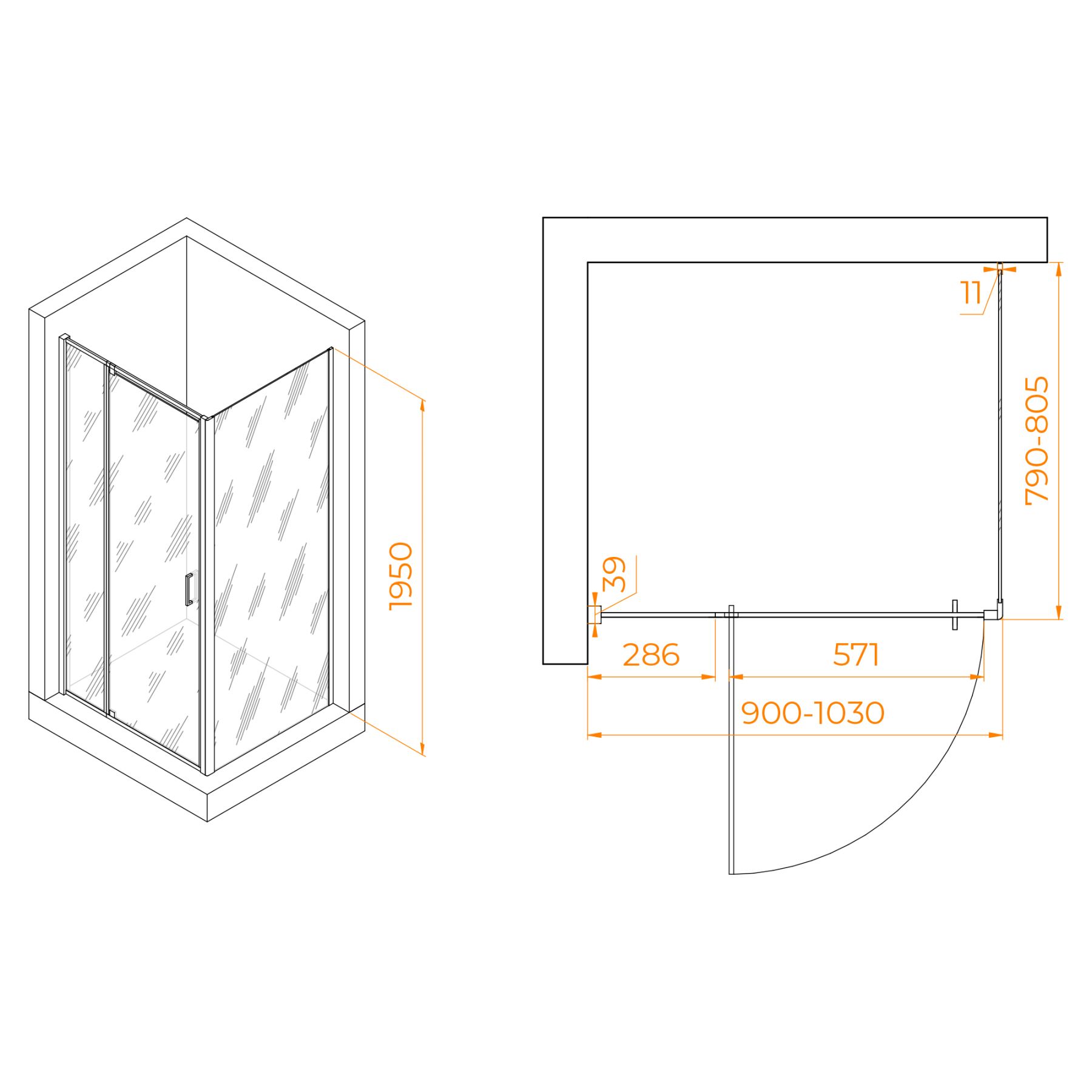 Душевой уголок RGW PA-078B (RGW PA-008B + Z-050-2B) 350807898-14 90x80см чёрный купить