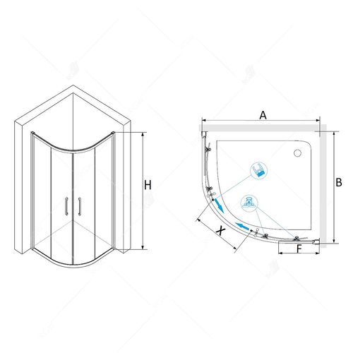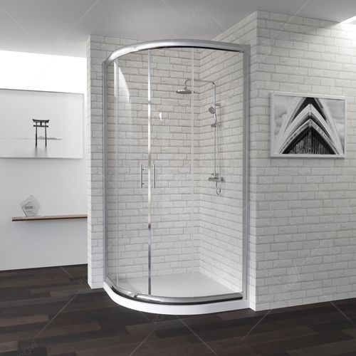 Две раздвижные душевые двери, широкий вход с центра