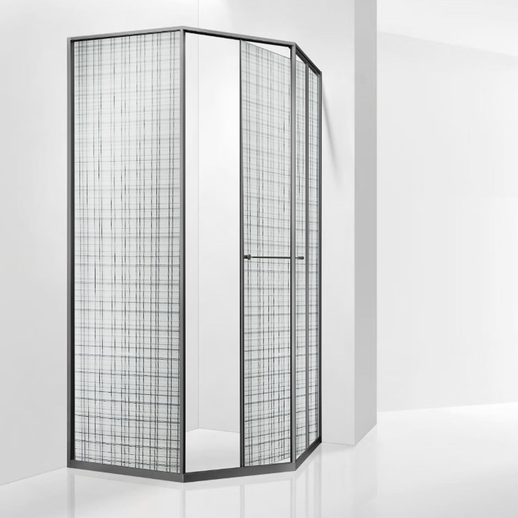 Инновационный механизм раздвижной системы при открытии плавно смещает дверь вдоль стационарного стекла при этом обеспечивая комфортный вход и просторное пространство внутри душевого угла.