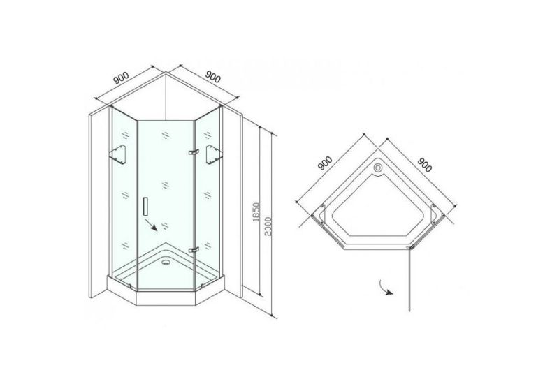 Душевое ограждение с поддоном глянцевый серебристый алюминиевый профиль, латунная ручка, стекло толщиной 8 мм, петли и фурнитура нержавеющая сталь, покрытие хром. Петли с доводчиками.
