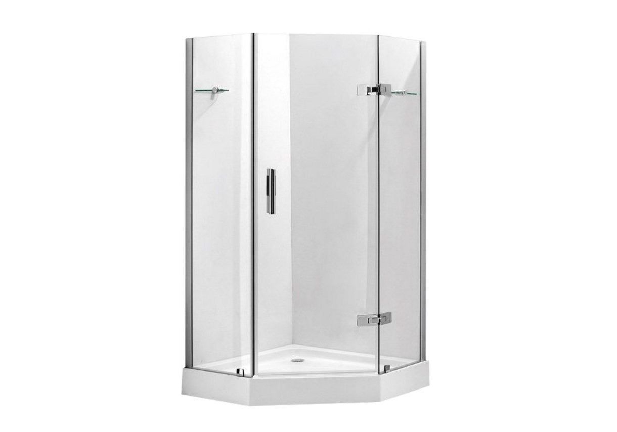 Душевое ограждение с поддоном, глянцевый серебристый алюминиевый профиль, латунная ручка, стекло толщиной 8 мм, петли и фурнитура нержавеющая сталь, покрытие хром. Петли с доводчиками.