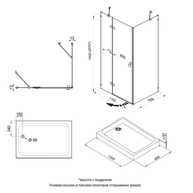 Высота с поддоном: 207 см