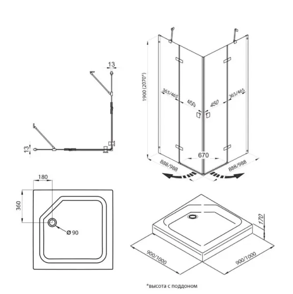 Душевой уголок Triton Дельта Щ0000054215 90x90 см профиль хром стекло прозрачное купить