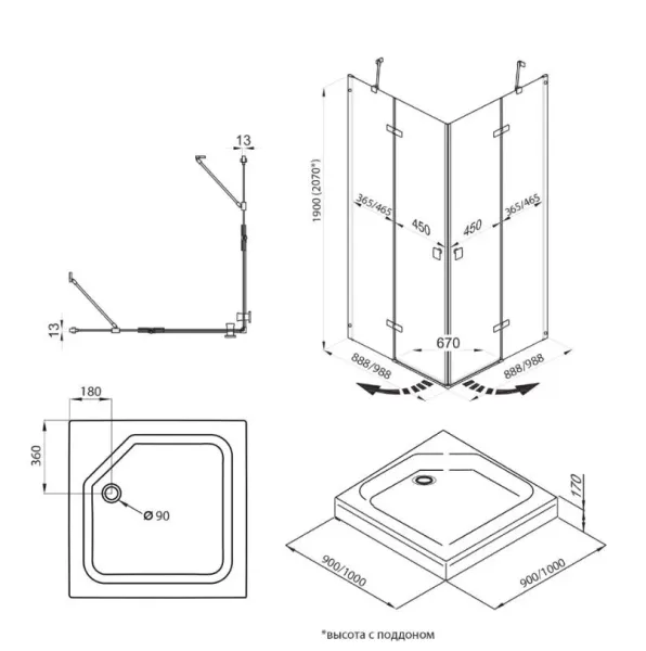 - Размеры: 90х90х190