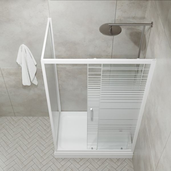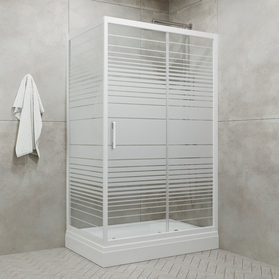 Душевой уголок Triton Фьюжн А 120x80 см с откатными дверцами и низким душевым поддоном. Алюминиевый профиль каркаса покрашен в белый цвет, стекло 4 мм прозрачное с рисунком. Высота душевого поддона 17 см.