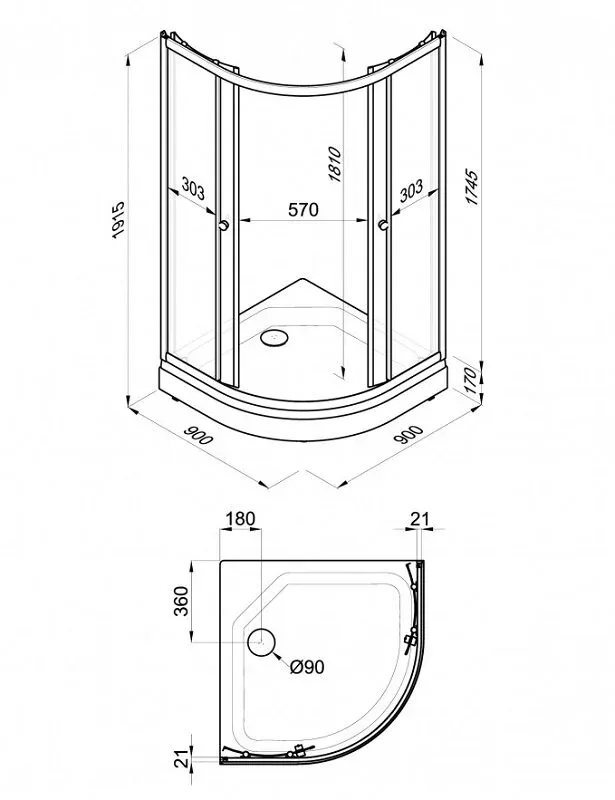 Размер: 90 x 90 x 174.5 см