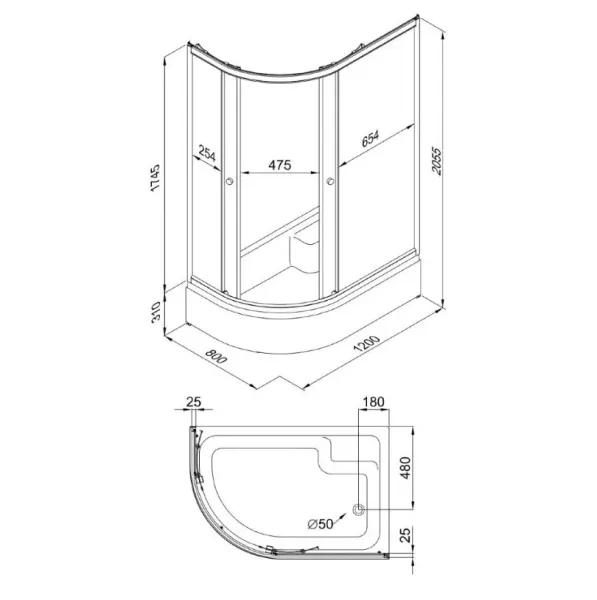 - Поддон душевой со съёмным экраном