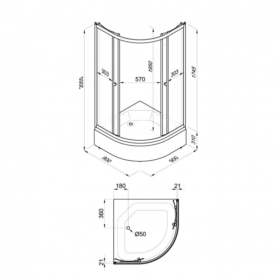 Размер: 90 x 90 x 174.5 см