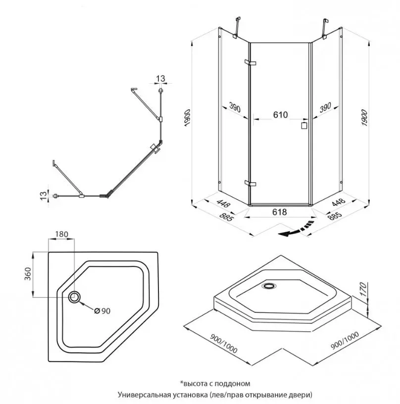 Душевой уголок Triton Сигма Щ0000054219 90x90 см профиль хром стекло прозрачное купить