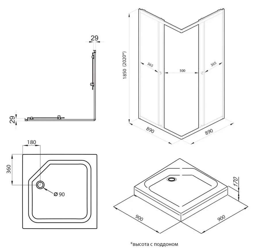 Душевой уголок Triton Вента Щ0000049616 90x90 см профиль хром стекло прозрачное купить