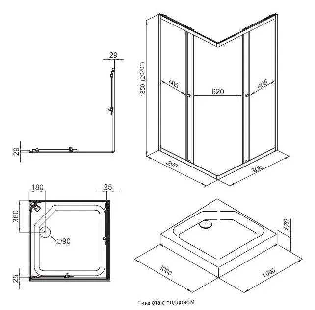 Душевой уголок Triton Вента Щ0000049619 100x100 см профиль хром стекло прозрачное купить