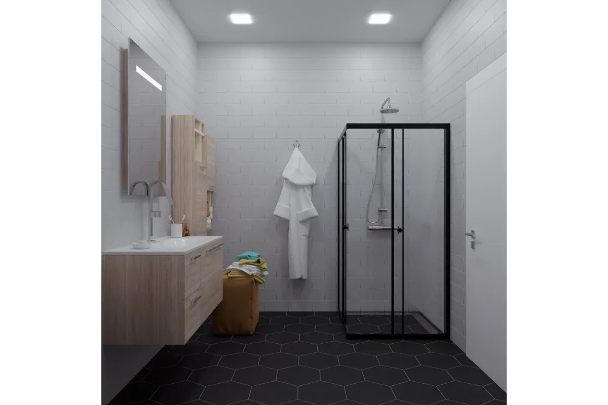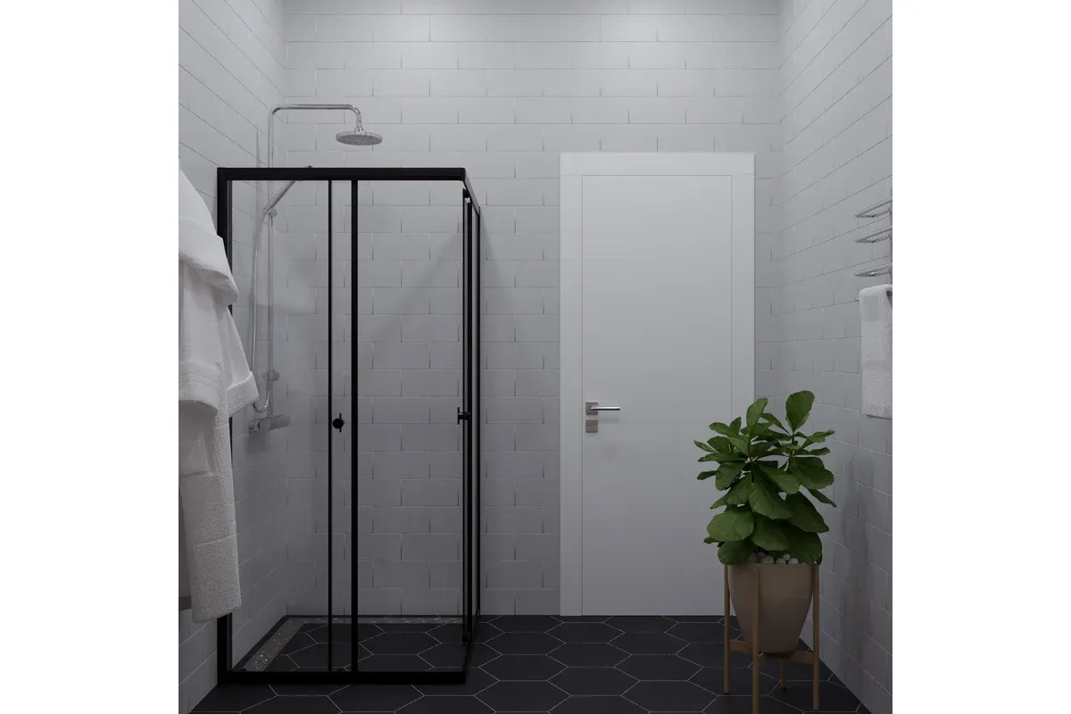 Черный профиль в сочетании с закаленным стеклом толщиной 4 мм, раздвижной механизм дверей и универсальная установка – всё это создаст неповторимую атмосферу в вашей ванной!