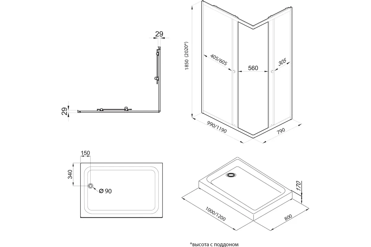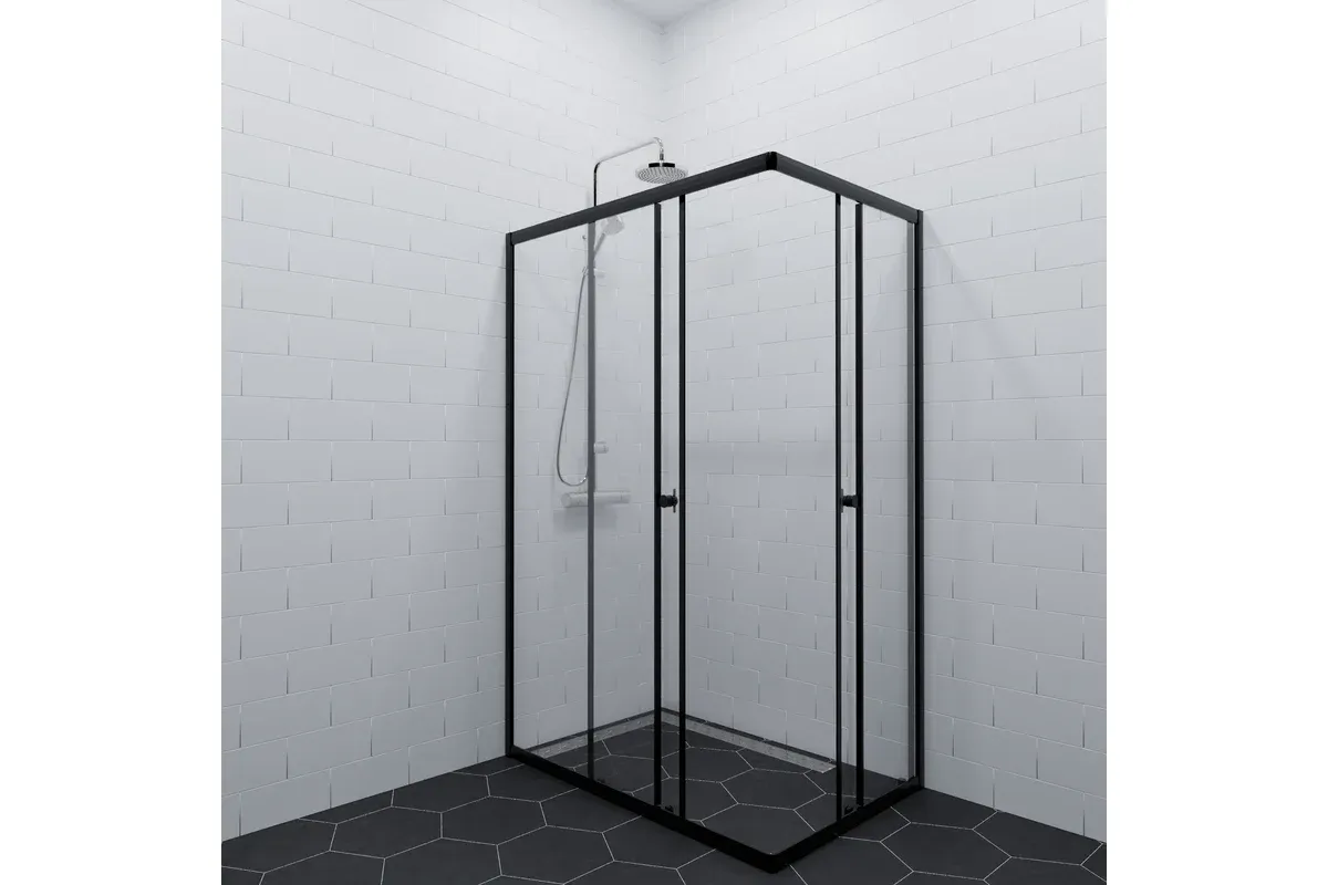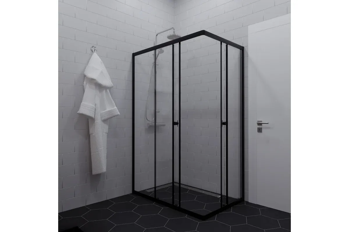 Черный профиль в сочетании с закаленным стеклом толщиной 4 мм, раздвижной механизм дверей и универсальная установка – всё это создаст неповторимую атмосферу в вашей ванной!