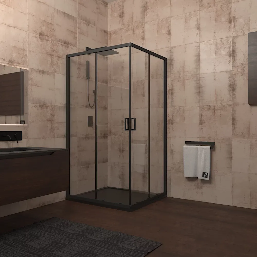Душевой уголок Veconi Rovigo RV-13, 1100x1100x1950, черный, стекло прозрачное купить