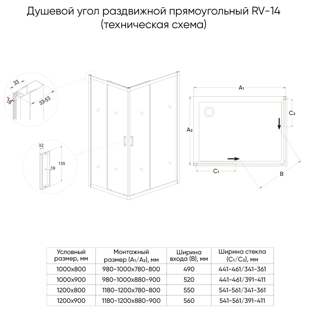 Душевой уголок Veconi Rovigo RV-14, 1100x800x1950, черный, стекло прозрачное купить