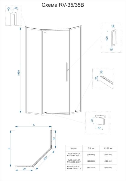 Душевой уголок Veconi Rovigo RV-35, 800х800х1950, хром, прозрачное стекло Душевой уголок Veconi Rovigo RV-35, 800х800х1950, хром, прозрачное стекло Казань 23273.25 30225.00 Veconi