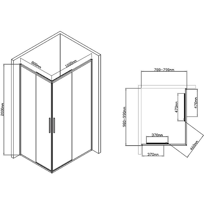Размеры (ШхВхД): 1000x2000х800 мм.