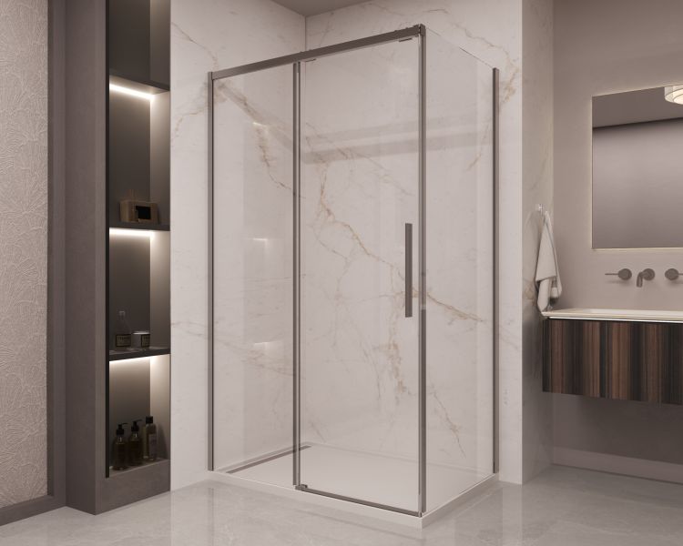 Душевой уголок Vincea Stella VSR-1ST1011CLGM, 1100*1000, вороненая сталь, стекло прозрачное купить
