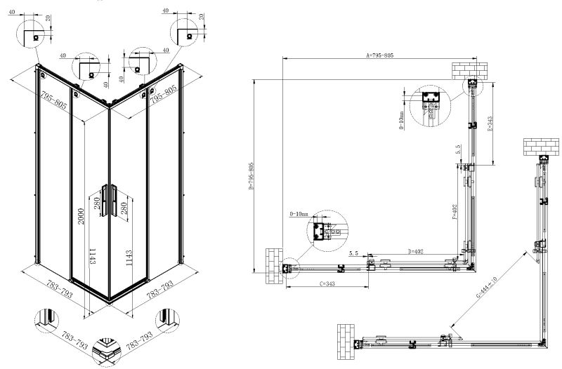 Душевой уголок Vincea Ultima VSS-7UL8080CLGM, 800*800, вороненая сталь стекло прозрачное купить