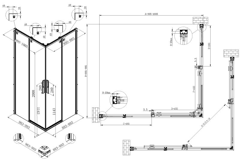 Душевой уголок Vincea Ultima VSS-7UL9010CLGM, 900*1000, вороненая сталь, стекло прозрачное купить