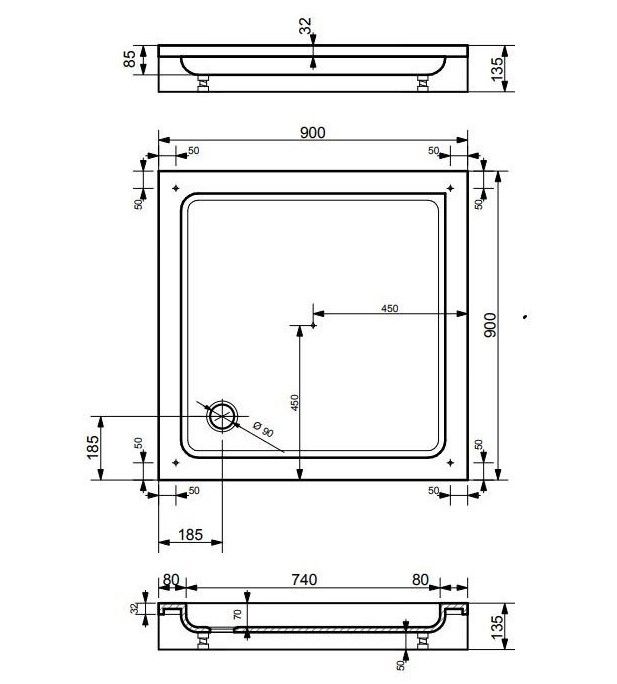 - Размеры: 900х900х135 см
