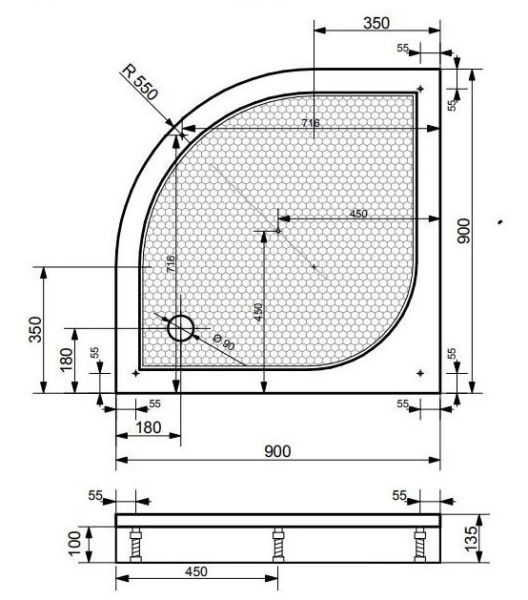 - Размеры: 900х900х100 см