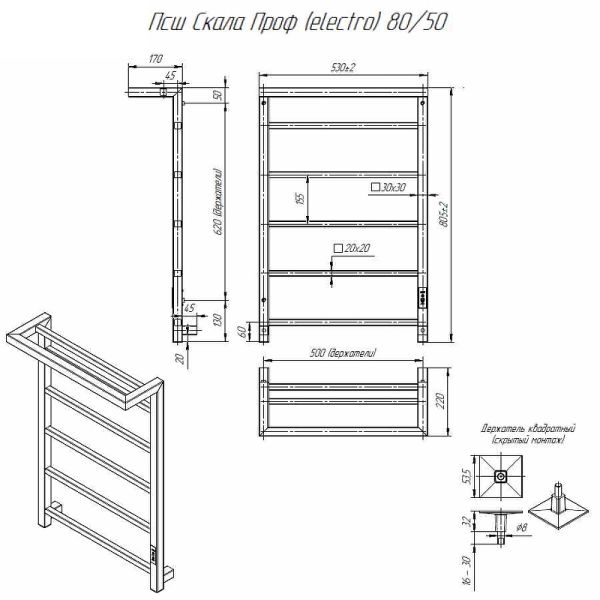 Электрический полотенцесушитель Altasan СкалаПроф СкалаПроф8050ПЧМ с полкой Черный муар 80х50 купить