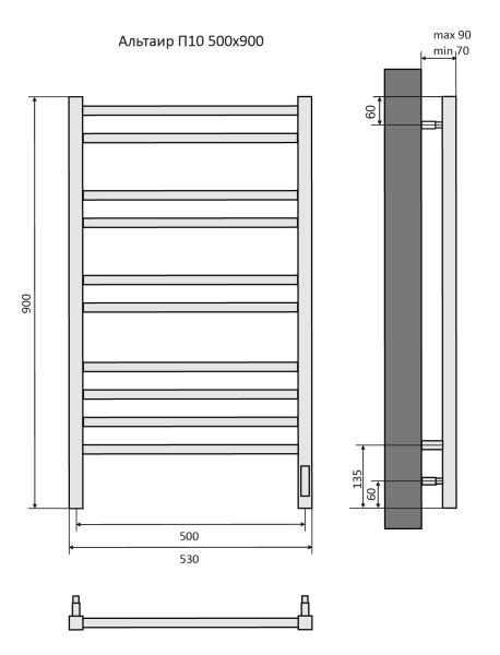 Полотенцесушитель электрический Aquatek (Акватек) Альтаир П10 500х900 мм, черный муар, подключение скрытое к сети электропитания / электропровод с вилкой, с терморегулятором и таймером quick touch, нержавеющая сталь AISI 201, гарантия 5 летХарактеристики:30х30/20х20,ВСТРОЕННЫЙ ДИММЕРКомплектация:полотенцесушитель;