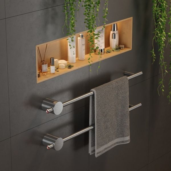 Простота, элегантность и функциональность — вот ключевые характеристики электрического вертикального полотенцесушителя. Его конструкция основана на греющем кабеле, а скрытое подключение уже входит в комплект. Полотенцесушитель органично впишется в любой интерьер, будь то миниатюрная ванная комната или просторное помещение. Он отличается высокой энергоэффективностью, так как его расход электроэнергии сравним с обычной лампочкой. Вы можете заказать этот стильный аксессуар в любом цвете по шкале RAL.