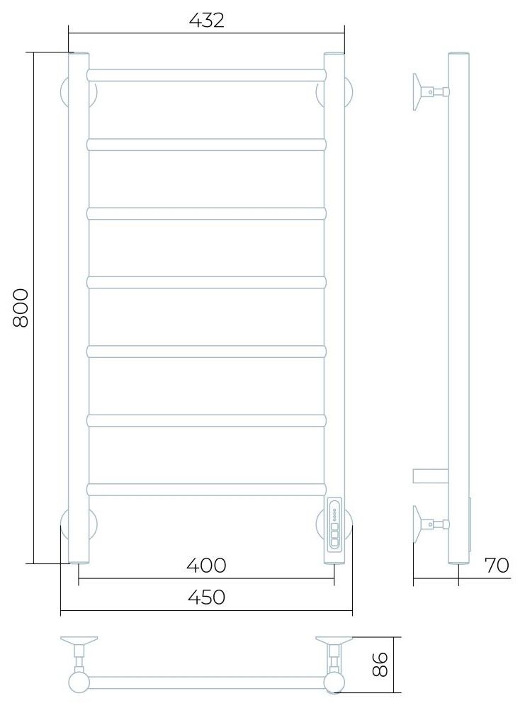 Заглушки на концах стоек, тип диммера - кнопочный (Quick Touch), крепления к стене.