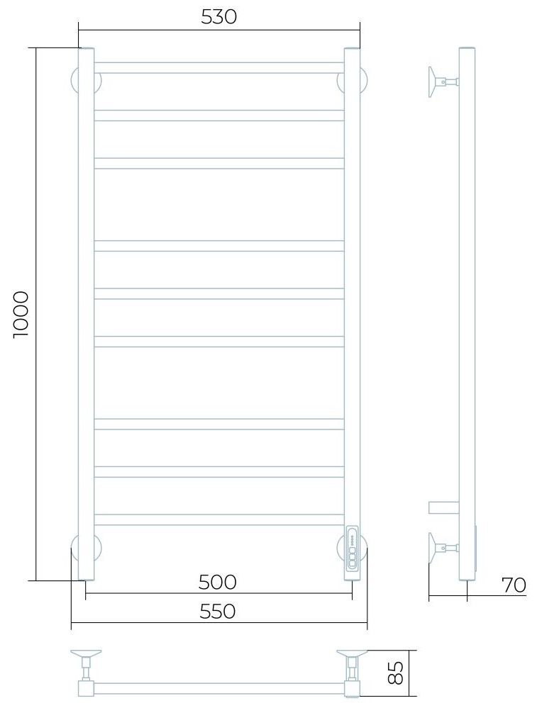 Заглушки на концах стоек, тип диммера - кнопочный (Quick Touch), крепления к стене.