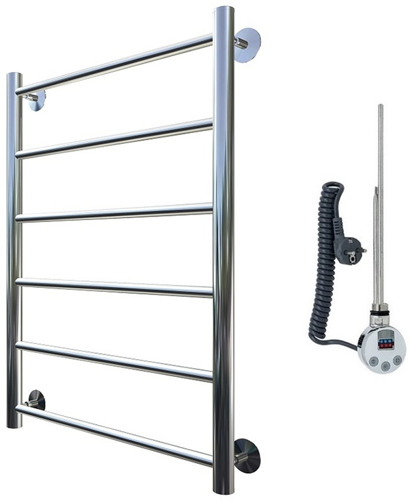 Внимание! Для скрытого монтажа электропроводки необходимо приобрести комплект скрытого подключения.Полотенцесушитель электрический комплектуется ТЭНом с терморегулятором и таймером.Изделие производится из нержавеющей стали AISI 201. Вертикальные трубы d -32 мм., для горизонтальных вставок используется труба d — 18 мм.Нагревательным элементом в полотенцесушителе является ТЭН. Полотенцесушитель заполнен бытовым антифризомЭкономичность: ТЭН нагревает антифриз до нужной температуры и выключается, далее при остывании полотенцесушителя он включается опять. Таким образом он работает не постоянно и получается, что ТЭН потребляет электричество не 300 Вт, а порядка 100 — 150 ВтМощность электрического прибора порядка 100 Вт при стоимости 1 Вт — 5 руб несложно посчитать: 100Вт х 24 = 2,4 кВт в сутки. Стоимость эксплуатации изделия за сутки 2,4 кВт х 5 руб. = 12 руб. При максимальной температуре расход электричества за 30 дней составит порядка 360 руб. При условии если сушка работает круглосуточно на максимальной температуре.Удобство монтажа: Полотенцесушитель крепится к стене на четыре держателя. Изначально ТЭН не установлен в полотенцесушитель для безопасной транспортировки, его можно установить, как справа, так и слева предварительно перевернув полотенцесушитель вверх ногами и выкрутив заглушку с нужной стороны на место в которое установится ТЭН.Примечание. Внимательно изучите инструкцию по установке ТЭНа!Скрытое подключение: Для скрытого монтажа электропроводки необходимо приобрести комплект скрытого подключения.Подключение в розетку: В комплекте с ТЭНом имеется шнур с вилкой, который будет необходим при подключении к розетке.