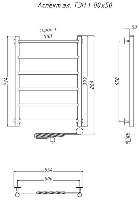 Электрический полотенцесушитель Тругор Аспект 1 80x50см хром Аспект1/элТЭН8050 купить