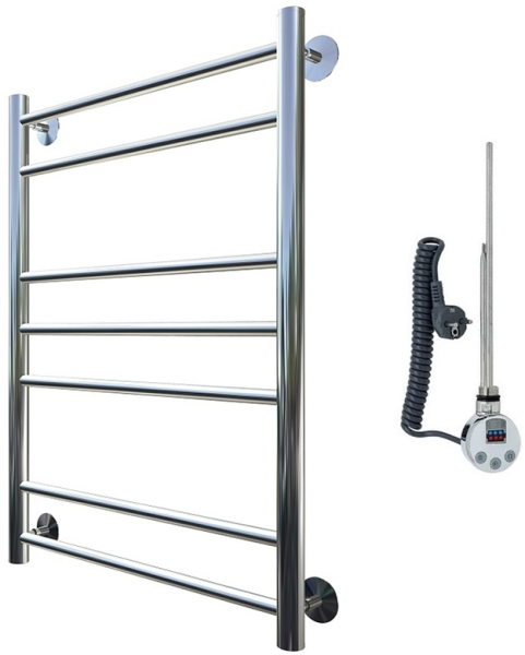 Внимание! Для скрытого монтажа электропроводки необходимо приобрести комплект скрытого подключения.Полотенцесушитель электрический комплектуется ТЭНом с терморегулятором и таймером.Изделие производится из нержавеющей стали AISI 201. Вертикальные трубы d -32 мм., для горизонтальных вставок используется труба d — 18 мм.Нагревательным элементом в полотенцесушителе является ТЭН. Полотенцесушитель заполнен бытовым антифризомЭкономичность: ТЭН нагревает антифриз до нужной температуры и выключается, далее при остывании полотенцесушителя он включается опять. Таким образом он работает не постоянно и получается, что ТЭН потребляет электричество не 300 Вт, а порядка 100 — 150 ВтМощность электрического прибора порядка 100 Вт при стоимости 1 Вт — 5 руб несложно посчитать: 100Вт х 24 = 2,4 кВт в сутки. Стоимость эксплуатации изделия за сутки 2,4 кВт х 5 руб. = 12 руб. При максимальной температуре расход электричества за 30 дней составит порядка 360 руб. При условии если сушка работает круглосуточно на максимальной температуре.Удобство монтажа: Полотенцесушитель крепится к стене на четыре держателя. Изначально ТЭН не установлен в полотенцесушитель для безопасной транспортировки, его можно установить, как справа, так и слева предварительно перевернув полотенцесушитель вверх ногами и выкрутив заглушку с нужной стороны на место в которое установится ТЭН.Примечание. Внимательно изучите инструкцию по установке ТЭНа!Скрытое подключение: Для скрытого монтажа электропроводки необходимо приобрести комплект скрытого подключения.Подключение в розетку: В комплекте с ТЭНом имеется шнур с вилкой, который будет необходим при подключении к розетке.