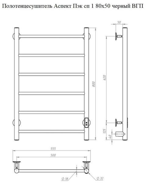 Электрический полотенцесушитель Тругор Аспект Пэк сп 1 80x50см белый АспектПэксп1/8050белыйВГП купить