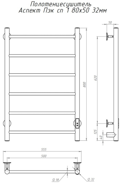 Электрический полотенцесушитель Тругор Аспект Пэк сп 1 80x50см хром АспектПэксп1/805032 купить
