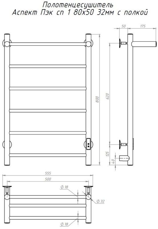 Электрический полотенцесушитель Тругор Аспект Пэк сп 1 П с полкой 80x50см хром АспектПэксп1П/805032 купить