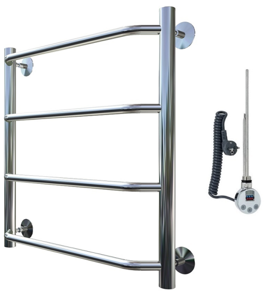 Внимание! Для скрытого монтажа электропроводки необходимо приобрести комплект скрытого подключения.Полотенцесушитель электрический комплектуется ТЭНом с терморегулятором и таймером.Изделие производится из нержавеющей стали AISI 201. Вертикальные трубы d -32 мм., для горизонтальных вставок используется труба d — 18 мм.Нагревательным элементом в полотенцесушителе является ТЭН. Полотенцесушитель заполнен бытовым антифризомЭкономичность: ТЭН нагревает антифриз до нужной температуры и выключается, далее при остывании полотенцесушителя он включается опять. Таким образом он работает не постоянно и получается, что ТЭН потребляет электричество не 300 Вт, а порядка 100 — 150 ВтМощность электрического прибора порядка 100 Вт при стоимости 1 Вт — 5 руб несложно посчитать: 100Вт х 24 = 2,4 кВт в сутки. Стоимость эксплуатации изделия за сутки 2,4 кВт х 5 руб. = 12 руб. При максимальной температуре расход электричества за 30 дней составит порядка 360 руб. При условии если сушка работает круглосуточно на максимальной температуре.Удобство монтажа: Полотенцесушитель крепится к стене на четыре держателя. Изначально ТЭН не установлен в полотенцесушитель для безопасной транспортировки, его можно установить, как справа, так и слева предварительно перевернув полотенцесушитель вверх ногами и выкрутив заглушку с нужной стороны на место в которое установится ТЭН.Примечание. Внимательно изучите инструкцию по установке ТЭНа!Скрытое подключение: Для скрытого монтажа электропроводки необходимо приобрести комплект скрытого подключения.Подключение в розетку: В комплекте с ТЭНом имеется шнур с вилкой, который будет необходим при подключении к розетке.