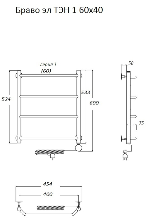 Электрический полотенцесушитель Тругор Браво 1 60x40см хром Браво1/элТЭН6040 купить