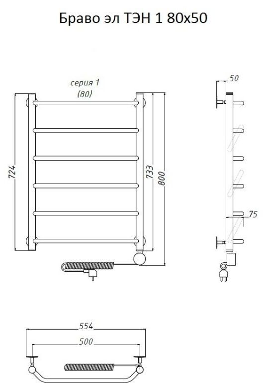 Электрический полотенцесушитель Тругор Браво 1 80x50см хром Браво1/элТЭН8050 купить