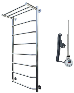 Внимание! Для скрытого монтажа электропроводки необходимо приобрести комплект скрытого подключения.Полотенцесушитель электрический комплектуется ТЭНом с терморегулятором и таймером.Изделие производится из нержавеющей стали AISI 201. Вертикальные трубы d -32 мм., для горизонтальных вставок используется труба d — 18 мм.Нагревательным элементом в полотенцесушителе является ТЭН. Полотенцесушитель заполнен бытовым антифризомЭкономичность: ТЭН нагревает антифриз до нужной температуры и выключается, далее при остывании полотенцесушителя он включается опять. Таким образом он работает не постоянно и получается, что ТЭН потребляет электричество не 300 Вт, а порядка 100 — 150 ВтМощность электрического прибора порядка 100 Вт при стоимости 1 Вт — 5 руб несложно посчитать: 100Вт х 24 = 2,4 кВт в сутки. Стоимость эксплуатации изделия за сутки 2,4 кВт х 5 руб. = 12 руб. При максимальной температуре расход электричества за 30 дней составит порядка 360 руб. При условии если сушка работает круглосуточно на максимальной температуре.Удобство монтажа: Полотенцесушитель крепится к стене на четыре держателя. Изначально ТЭН не установлен в полотенцесушитель для безопасной транспортировки, его можно установить, как справа, так и слева предварительно перевернув полотенцесушитель вверх ногами и выкрутив заглушку с нужной стороны на место в которое установится ТЭН.Примечание. Внимательно изучите инструкцию по установке ТЭНа!Скрытое подключение: Для скрытого монтажа электропроводки необходимо приобрести комплект скрытого подключения.Подключение в розетку: В комплекте с ТЭНом имеется шнур с вилкой, который будет необходим при подключении к розетке.