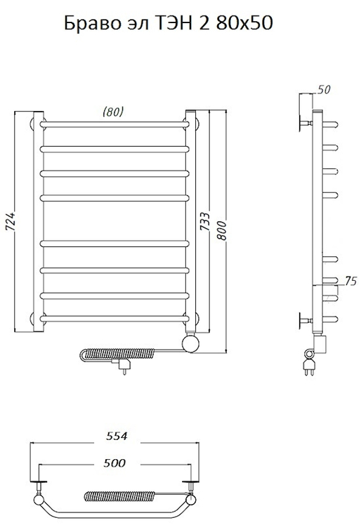 Электрический полотенцесушитель Тругор Браво 2 80x50см хром Браво2/элТЭН8050 купить