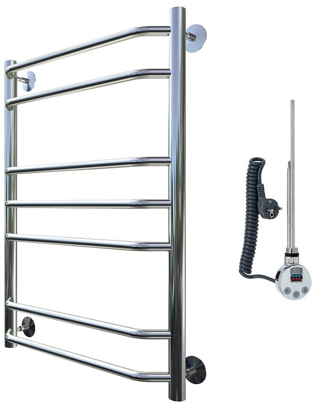 Внимание! Для скрытого монтажа электропроводки необходимо приобрести комплект скрытого подключения.Полотенцесушитель электрический комплектуется ТЭНом с терморегулятором и таймером.Изделие производится из нержавеющей стали AISI 201. Вертикальные трубы d -32 мм., для горизонтальных вставок используется труба d — 18 мм.Нагревательным элементом в полотенцесушителе является ТЭН. Полотенцесушитель заполнен бытовым антифризомЭкономичность: ТЭН нагревает антифриз до нужной температуры и выключается, далее при остывании полотенцесушителя он включается опять. Таким образом он работает не постоянно и получается, что ТЭН потребляет электричество не 300 Вт, а порядка 100 — 150 ВтМощность электрического прибора порядка 100 Вт при стоимости 1 Вт — 5 руб несложно посчитать: 100Вт х 24 = 2,4 кВт в сутки. Стоимость эксплуатации изделия за сутки 2,4 кВт х 5 руб. = 12 руб. При максимальной температуре расход электричества за 30 дней составит порядка 360 руб. При условии если сушка работает круглосуточно на максимальной температуре.Удобство монтажа: Полотенцесушитель крепится к стене на четыре держателя. Изначально ТЭН не установлен в полотенцесушитель для безопасной транспортировки, его можно установить, как справа, так и слева предварительно перевернув полотенцесушитель вверх ногами и выкрутив заглушку с нужной стороны на место в которое установится ТЭН.Примечание. Внимательно изучите инструкцию по установке ТЭНа!Скрытое подключение: Для скрытого монтажа электропроводки необходимо приобрести комплект скрытого подключения.Подключение в розетку: В комплекте с ТЭНом имеется шнур с вилкой, который будет необходим при подключении к розетке.