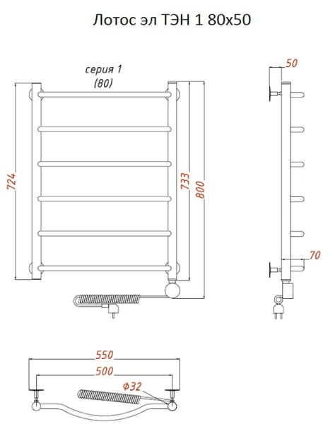 Внимание! Для скрытого монтажа электропроводки необходимо приобрести комплект скрытого подключения.Полотенцесушитель электрический комплектуется ТЭНом с терморегулятором и таймером.Изделие производится из нержавеющей стали AISI 201. Вертикальные трубы d -32 мм., для горизонтальных вставок используется труба d — 18 мм.Нагревательным элементом в полотенцесушителе является ТЭН. Полотенцесушитель заполнен бытовым антифризомЭкономичность: ТЭН нагревает антифриз до нужной температуры и выключается, далее при остывании полотенцесушителя он включается опять. Таким образом он работает не постоянно и получается, что ТЭН потребляет электричество не 300 Вт, а порядка 100 — 150 ВтМощность электрического прибора порядка 100 Вт при стоимости 1 Вт — 5 руб несложно посчитать: 100Вт х 24 = 2,4 кВт в сутки. Стоимость эксплуатации изделия за сутки 2,4 кВт х 5 руб. = 12 руб. При максимальной температуре расход электричества за 30 дней составит порядка 360 руб. При условии если сушка работает круглосуточно на максимальной температуре.Удобство монтажа: Полотенцесушитель крепится к стене на четыре держателя. Изначально ТЭН не установлен в полотенцесушитель для безопасной транспортировки, его можно установить, как справа, так и слева предварительно перевернув полотенцесушитель вверх ногами и выкрутив заглушку с нужной стороны на место в которое установится ТЭН.Примечание. Внимательно изучите инструкцию по установке ТЭНа!Скрытое подключение: Для скрытого монтажа электропроводки необходимо приобрести комплект скрытого подключения.Подключение в розетку: В комплекте с ТЭНом имеется шнур с вилкой, который будет необходим при подключении к розетке.